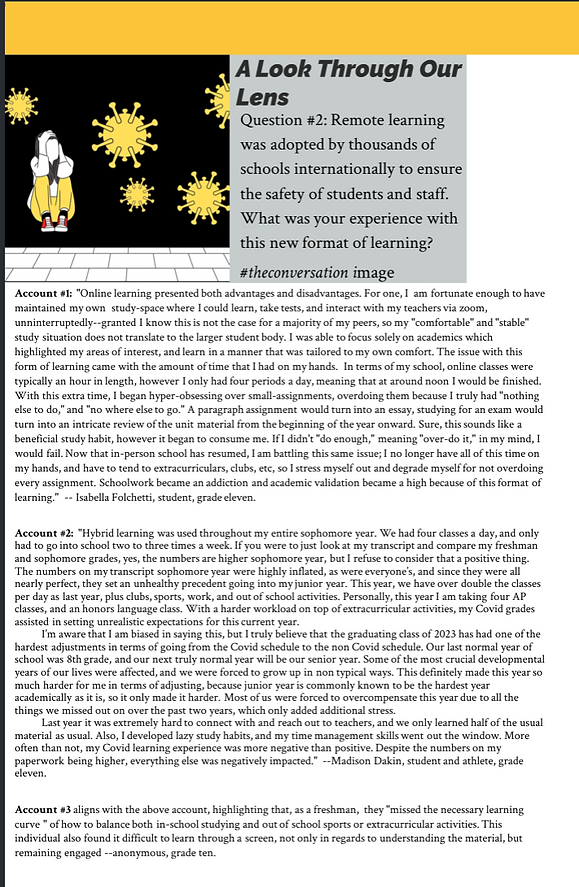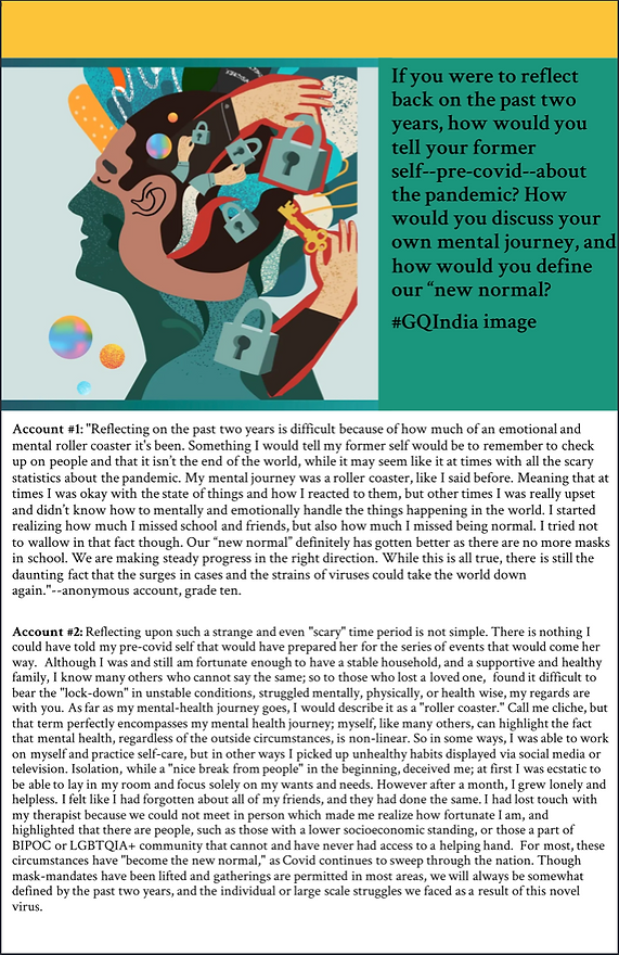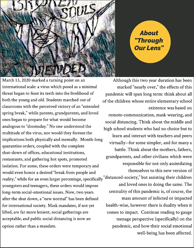 Our open-faced magazine which underscores raw teenage perspectives on the pandemic and how it has impacted social-emotional being.